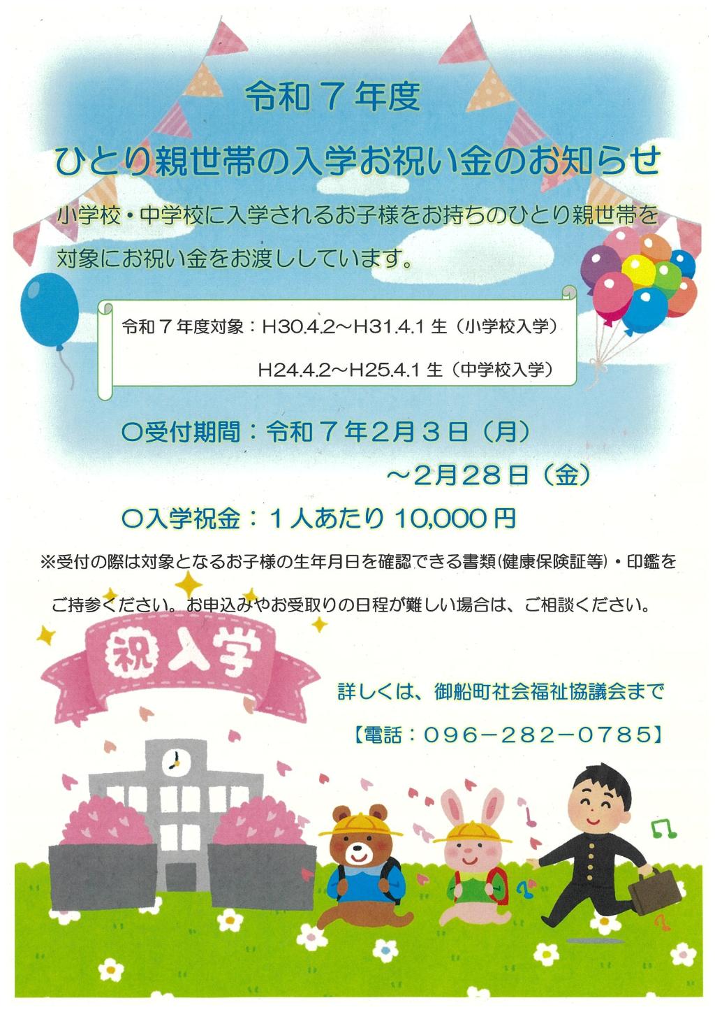 ひとり親の家庭を対象に、子どもの小学校・中学校入学のお祝い金をお渡ししました。 学用品などの購入な…