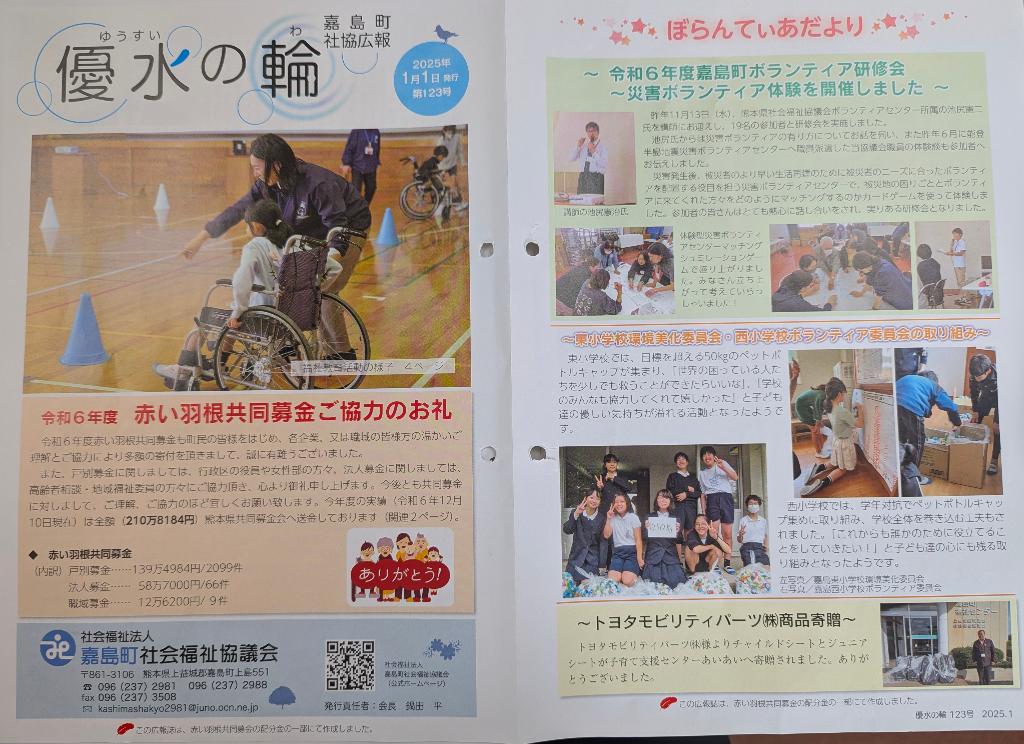 共同募分配金により、広報誌「社協広場」改め「優水の輪」を年4回(4月、7月、10月、1月)発行し、町…