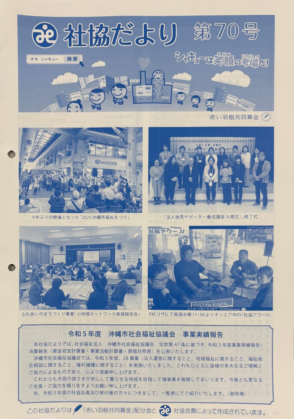広報啓発事業の一環として、社協だよりを発行しました。 第70号では令和5度沖縄市社会福祉協議会…