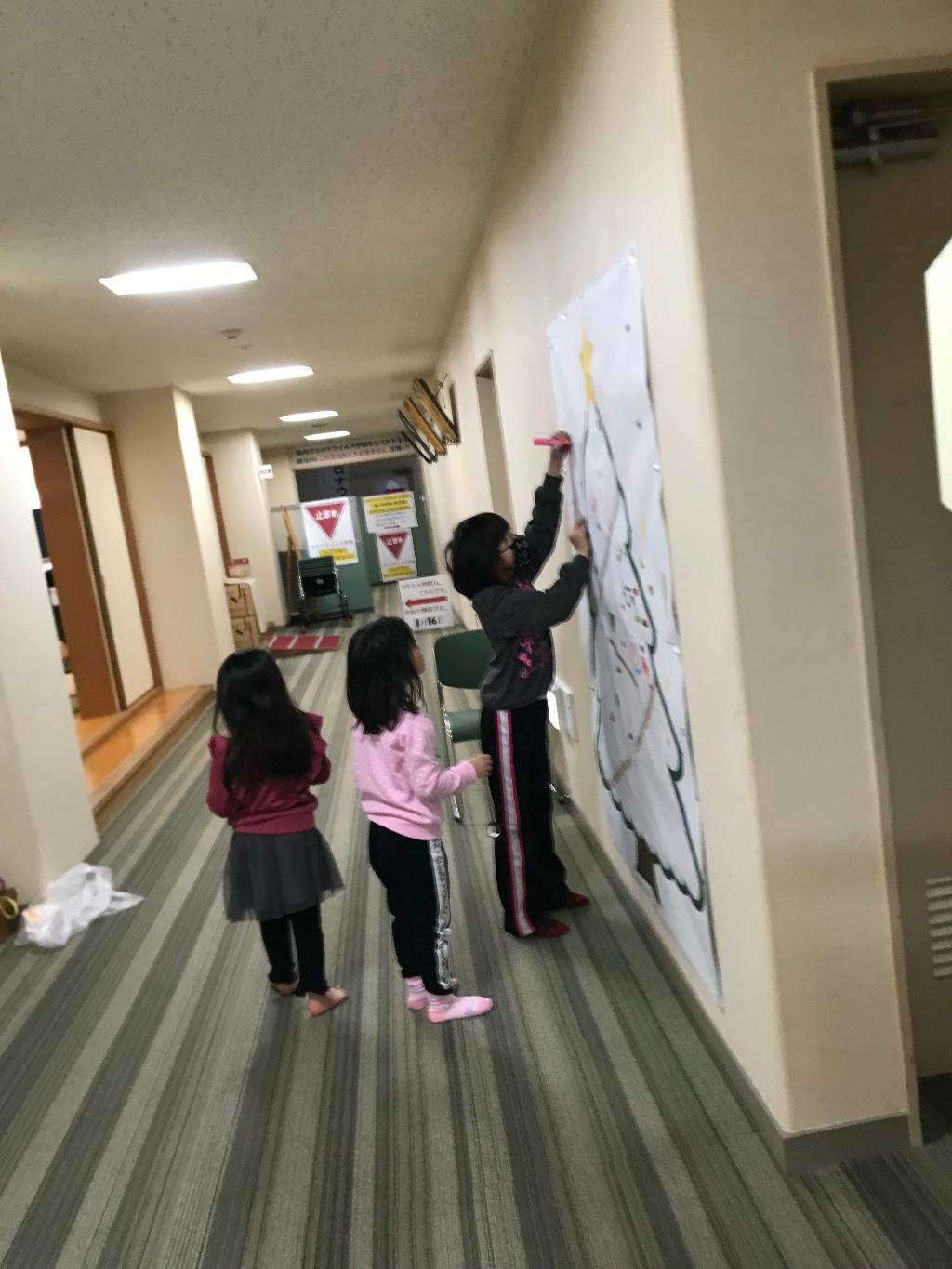 クリスマスツリーの装飾。年末ビンゴ大会を実施