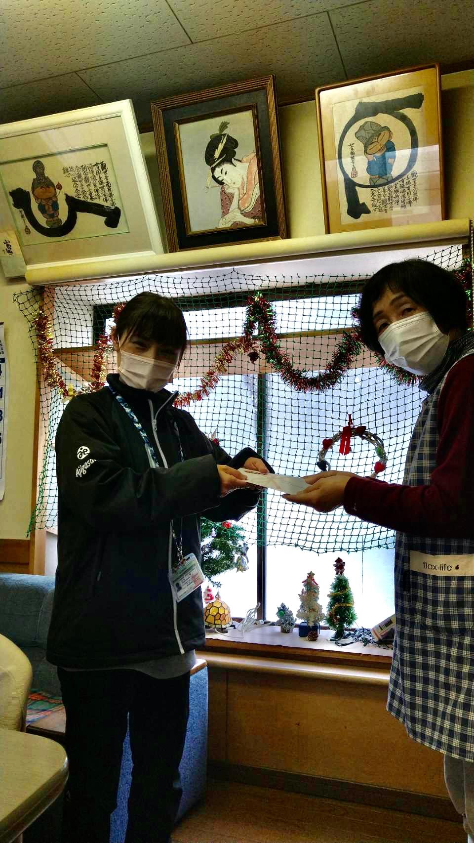 コロナ禍で様々な行事が中止となり通所者も残念な気持ちでいましたが、年末のクリスマス会は感染予防対策を取りながらおこない、久々に楽しいひとときを皆で過ごせました。ありがとうございます。