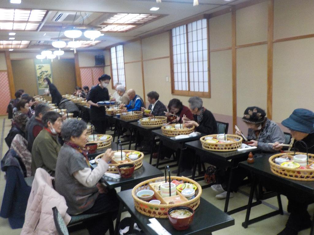 村内の一人暮らし高齢者を対象にクリスマス会食会として実施している。コロナの影響でお互いに会う機会がなかったため、参加者と事業に携わる人たちの交流の場する。
