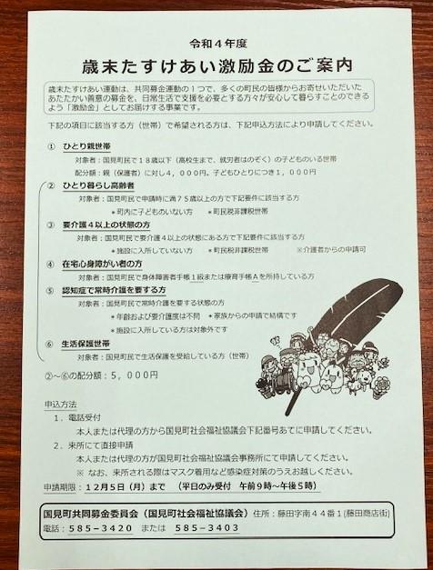 町民の皆様からお寄せいただいたあたたかい善意の募金を、日常生活で支援を必要とする方々が安心して暮らすことのできるよう「激励金」としてお届けする事業となります。