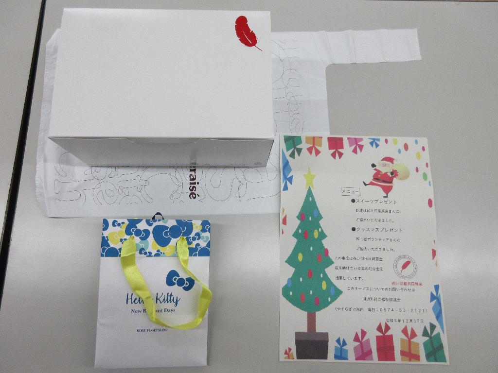 父子家庭の方へクリスマスにあわせ、ケーキチキンを配食する。福祉委員、民生児童委員の協力。