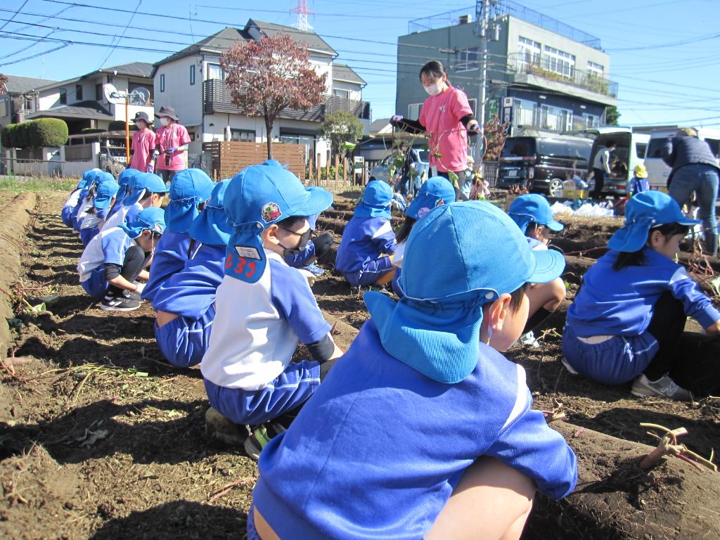 市内の農家の方にご協力いただき、秋に芋掘りを実施しました。引き続きコロナ禍で、保育園の行事も多くが中止となるなか、感染症対策を講じながら屋外で事業が実施できたことを大変嬉しく思います。子どもたちも大変喜んでいました。ありがとうございました。
