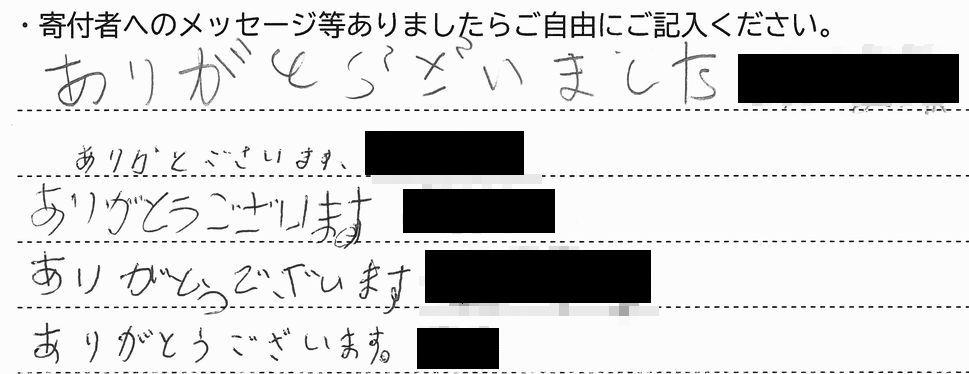 当施設の利用者さん5人にお礼を書いて頂きました。(写真)