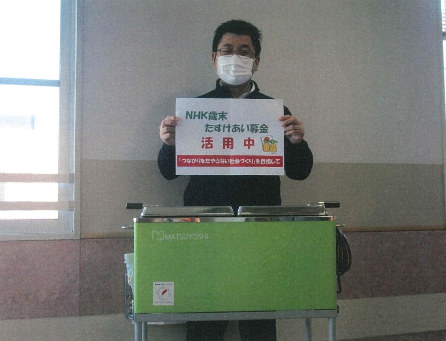 この度はNHK歳末たすけあい募金の助成金で新しい清拭車を購入できました。毎日使用するものなので職員、利用者共々、気持ちよくつかわせて頂いております。今後も大切に使用させていただきます。ありがとうございました。