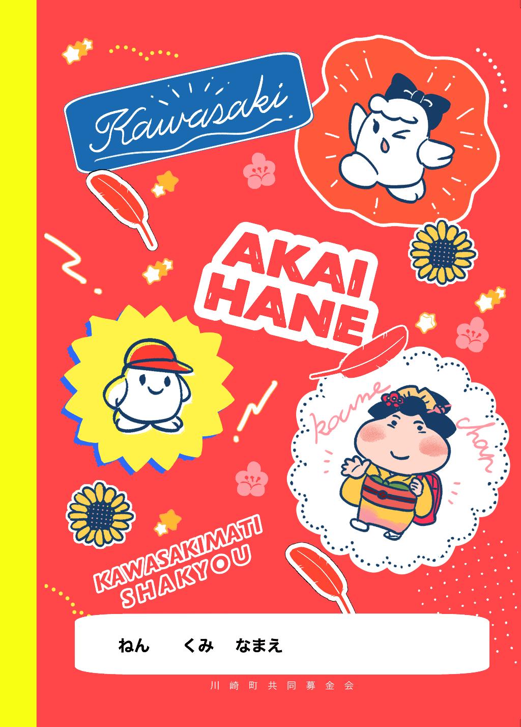 小学1年生へ向けた共同募金グッズの作成、ノート・鉛筆・消しゴムの三点セット。