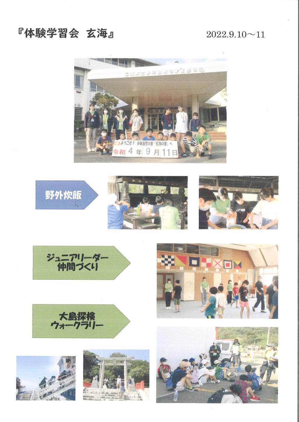 子ども会活動ではリーダーシップを積極的に発揮できるリーダーが必要です。リーダーとしての資質を身につけ、子ども会活動の中枢となり活躍するリーダーの育成と、他校・他地域・異年齢間の交流を図り、自主性・協調性を育み生きる力を育てることを目標とした研修を行っています。頂いた配分金で実施した「体験学習会日帰りキャンプ」では、市内小学生4・5・6年生および当連合会のジュニアリーダー(中・高校生)を対象に行いました。3年ぶりの宿泊研修でしたが内容の濃い研修をすることができました。ジュニアリーダーによるレクリエーション、野外炊飯、大島でのウォークラリーを通して、仲間づくりを学ぶことができました。コロナ禍でできる研修は限られていますが、とてもいい研修となりました。ありがとうございました。