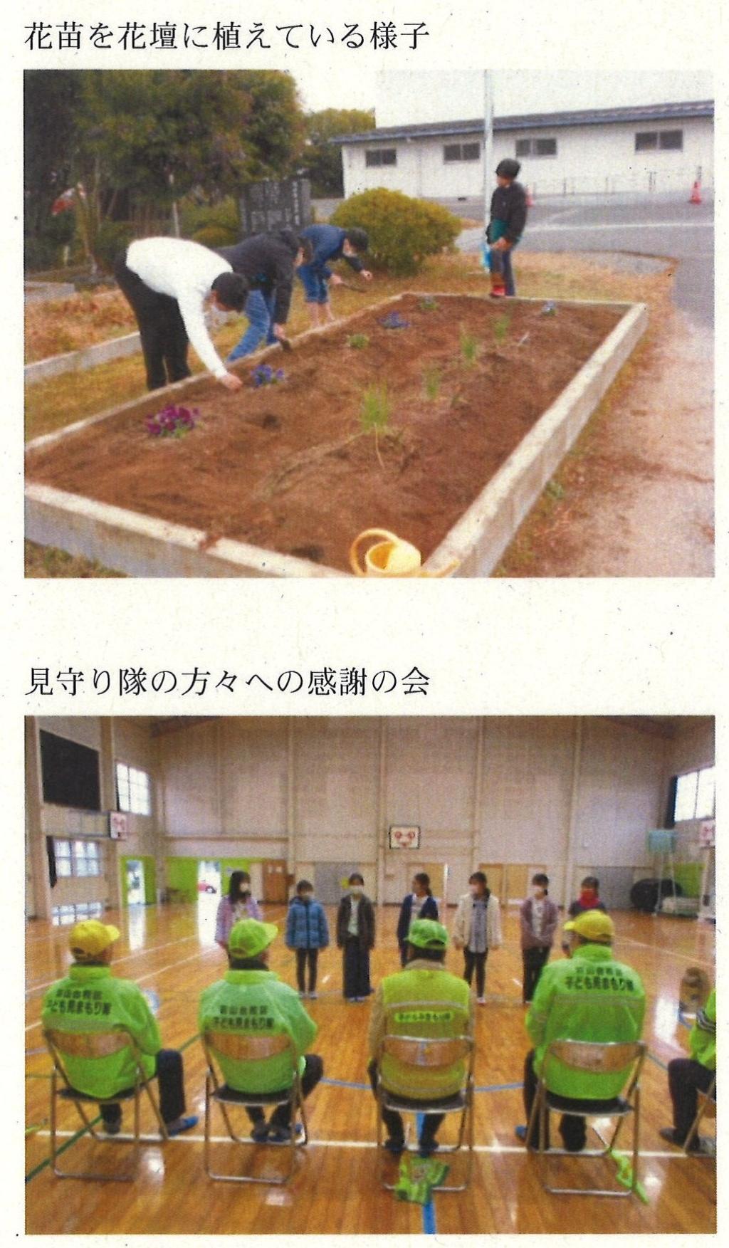 本校ではコロナ禍の中、マスクの着用や換気の徹底等の感染防止策を講じながら事業に取り組みました。特に3年生では福祉教育と国語科教育とを関連させてESDを推進していくために「みんなの幸せのために自分にできることを「見つけ・はじめ・つづける」視点を常に教師と児童が共有し、地域の「ひと・もの・こと」の発見と活用及び地域施設との交流を積極的に行い、各学年の取組を学習発表会を通して地域に発信してきました。本年度に実施できた事業は本の読み聞かせ、障害者とのかかわりについて学ぶ総合的な学習、子ども見守り隊への感謝の会、日本文化クラブの充実、花壇の環境整備です。来年度はさらに人として生きる上で大切な内容を学習できるように努めていきます。赤い羽根共同募金の助成には本当に感謝しています。今後も本校児童の心の育成のため、ご協力のほどよろしくお願いいたします。