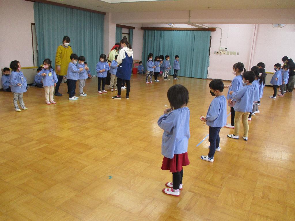 でも園内遊びを充実させ、各クラスこま遊びをたくさん取り入れて楽しみました。練習した成果を披露する場を設け、1月25日に広田保育園こま回し大会を実施しました。