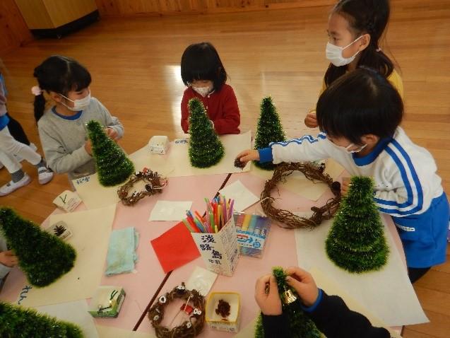 ・色合いや組み合わせなどを工夫したり考えたりしながら、ツリーに自由に飾り付けを楽しむことができた。