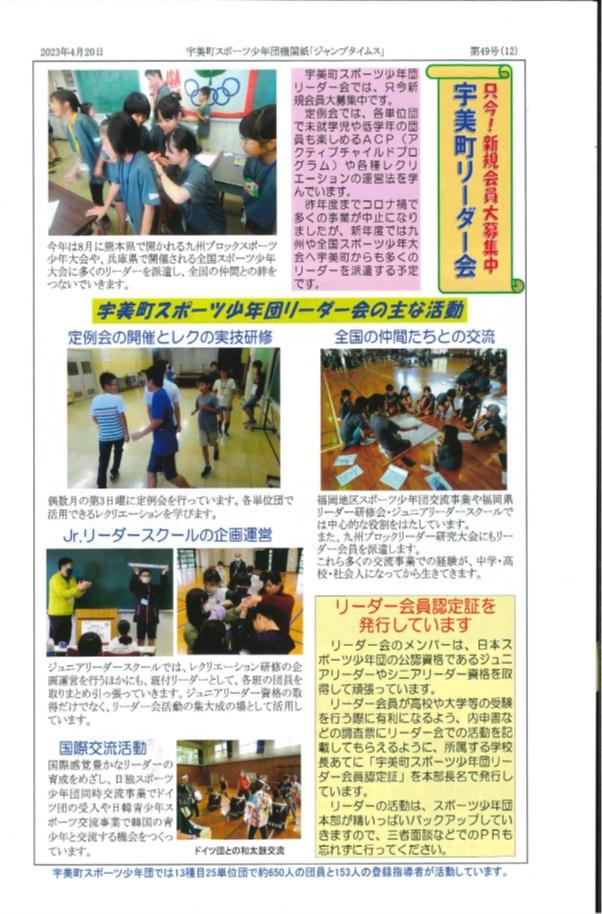 活動に助成いただき、誠にありがとうございます。新型コロナウイルス感染症拡大防止のため、リーダー会活動も直前で中止せざるを得ないこともありました。その中でも、福岡地区スポーツ少年団ジュニア交流事業への参加や、福岡県スポーツ少年団ジュニア・リーダースクールにリーダー会員をはじめ、たくさんの団員が参加できたことは今後の活動につながると思います。これからもリーダー会活動へのご支援を宜しくお願い致します。