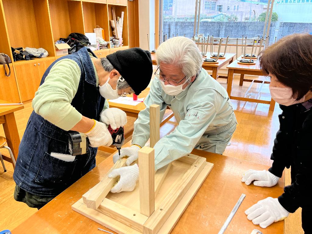 家屋の小修繕に関する知識や基本的な技術を楽しく学び、その技術をいかして高齢者などの日常生活における小さな困りごとの解決につなげていくことを目的に、小修繕フォローアップ講座を開催しました。今回はミニテーブル作りをおこないました。