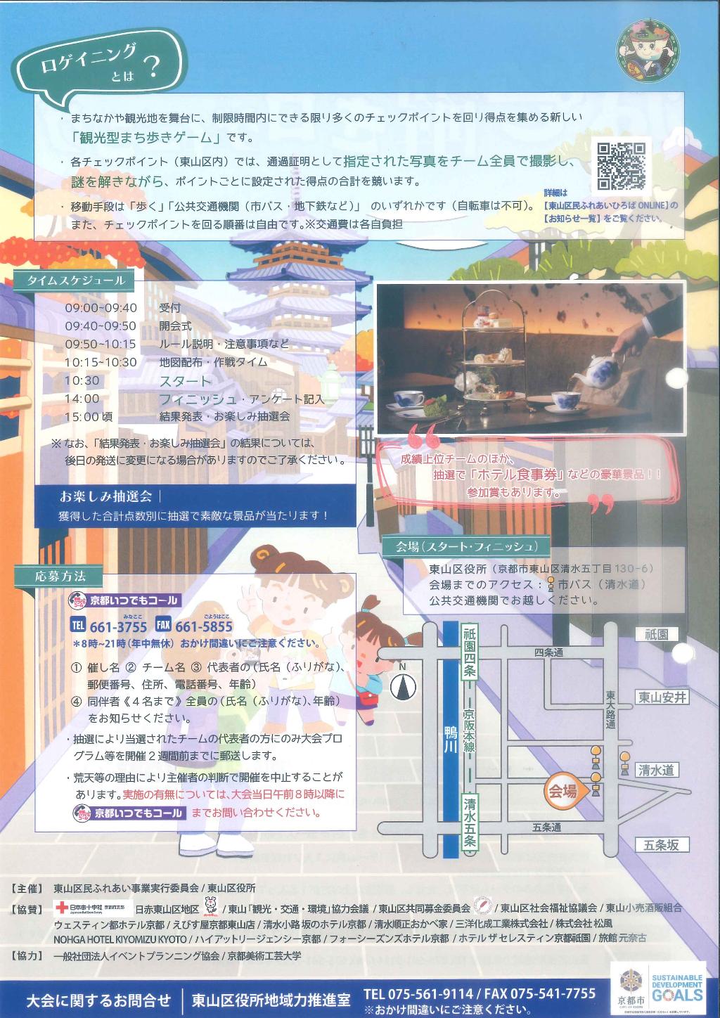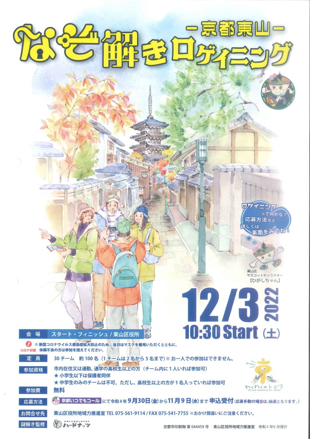 区内にチェックポイントを多数設置し、制限時間内に出来るだけ多くの写真を撮影し点数を競う観光型まち歩きゲームを実施。ゆっくりと東山のまちの魅力を感じてもらう貴重な機会となりました。