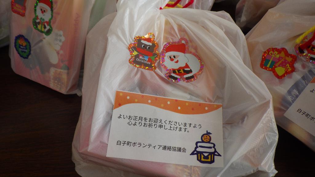 町社会福祉協議会で実施している給食サービスに合わせ、良い年を迎えてもらうための品物を贈呈することができました。 ありがとうございました。