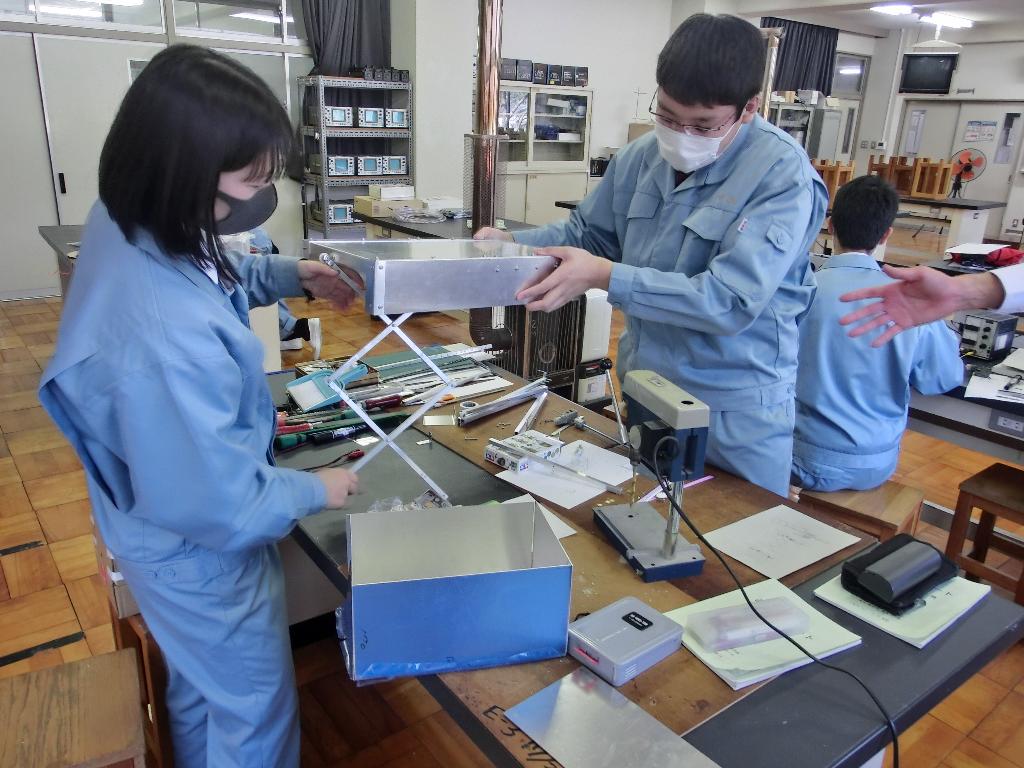 若狭東高校電気・機械科電気コースが共同募金について学び、自身の製作した募金箱を設置し募金活動にも参加することで、体験学習の機会からから学びを深める