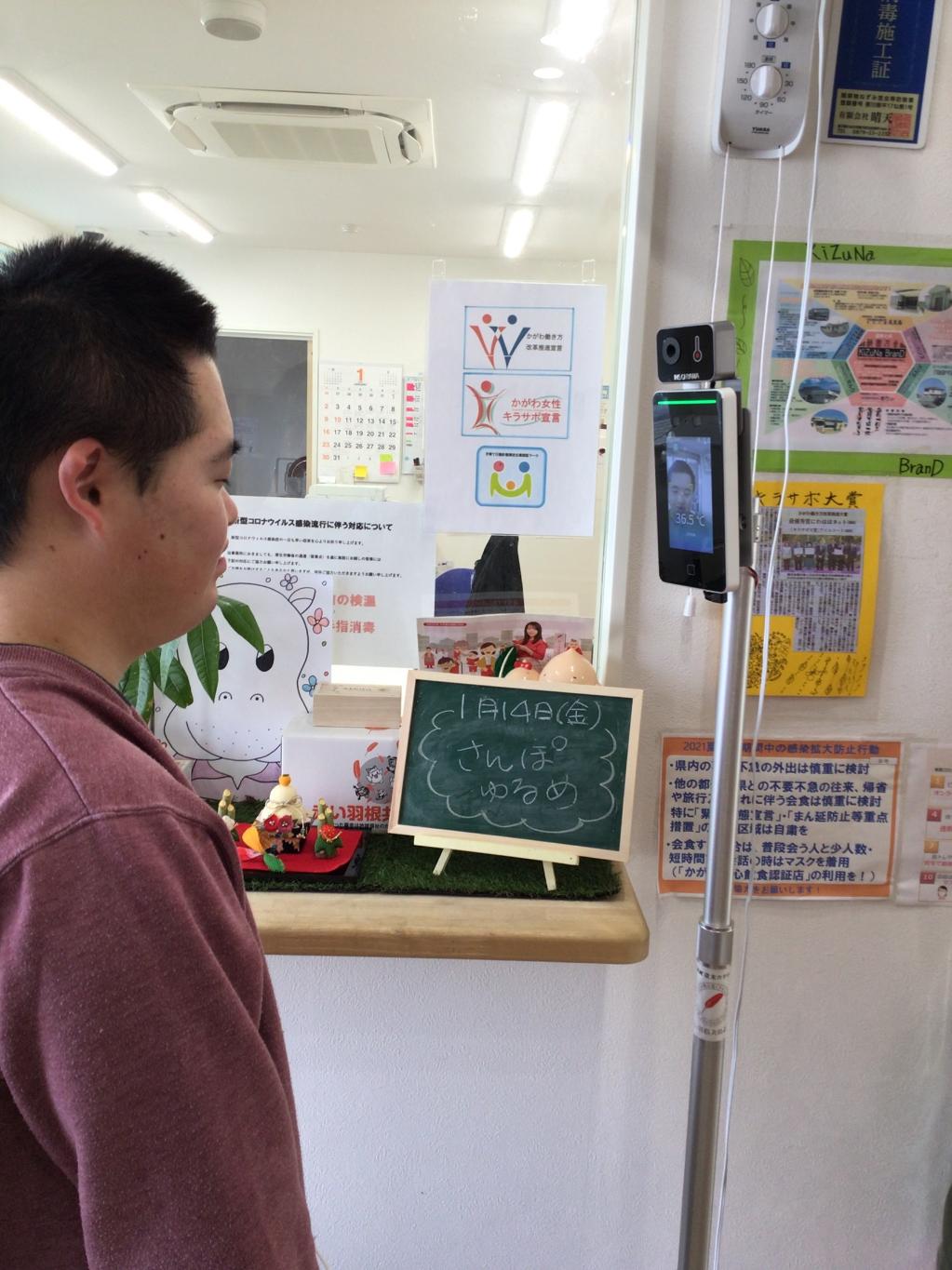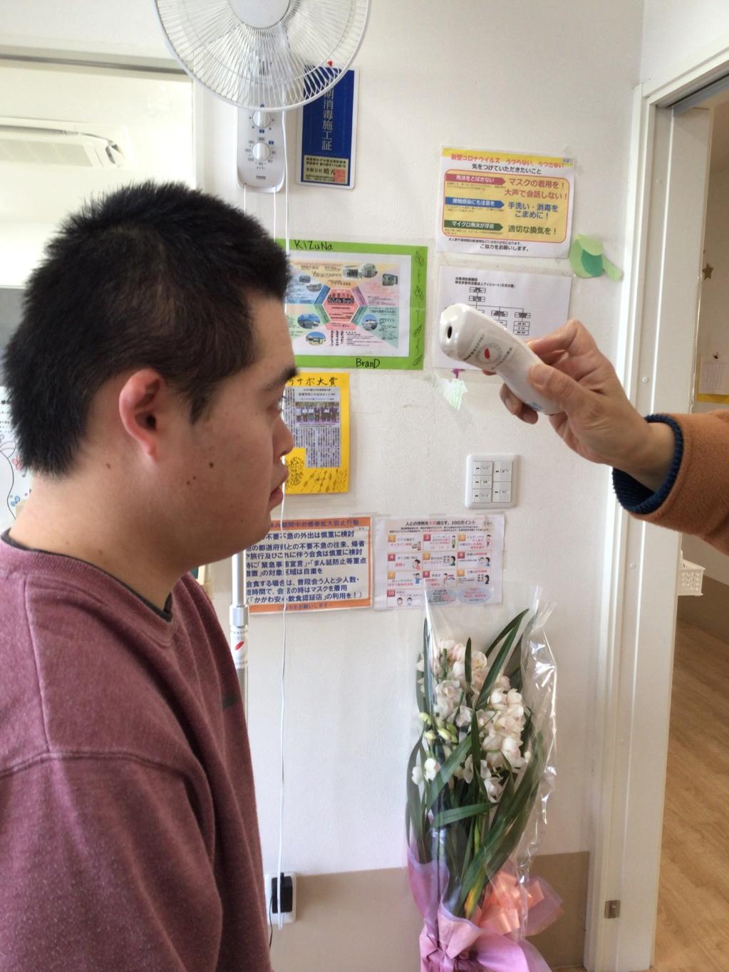 NHK歳末たすけあいの助成金により、サーマルカメラ、非接触型体温計、サーキュレーターを整備できました。これまでは、検温等に時間を要していましたが、利用者さんも自身で測定ができるようになりました。