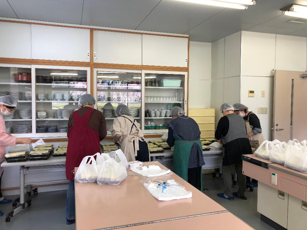 調理が困難な高齢者や障害者の方、見守りが必要な方を対象に、週1回ボランティアが調理を行い、民生委員やボランティアを通じて利用者宅に見守りを兼ねてお弁当を届ける。