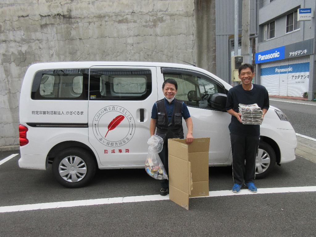 新しい作業車は、主にリサイクル事業で活用します。アルミ缶やダンボール・新聞紙などを回収するのに天候を気にすることなく業務にあたれます。利用者さんからは「工賃アップ」「頑張ろう」と意欲がでています。施設外の作業に行く時にも使うことができます。安全運転を心がけ、作業してまいります。