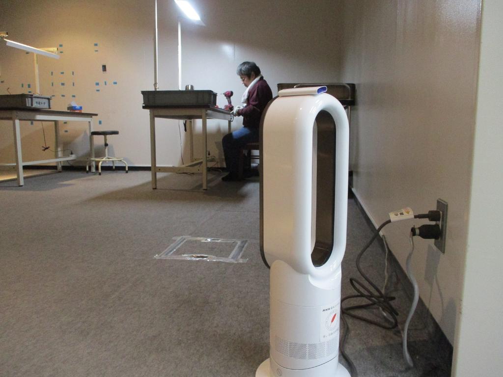 寒い季節に備え、エアコンの風が届きにくいスペースで作業している利用者さんの健康面を配慮し、電気ストーブを整備する。
