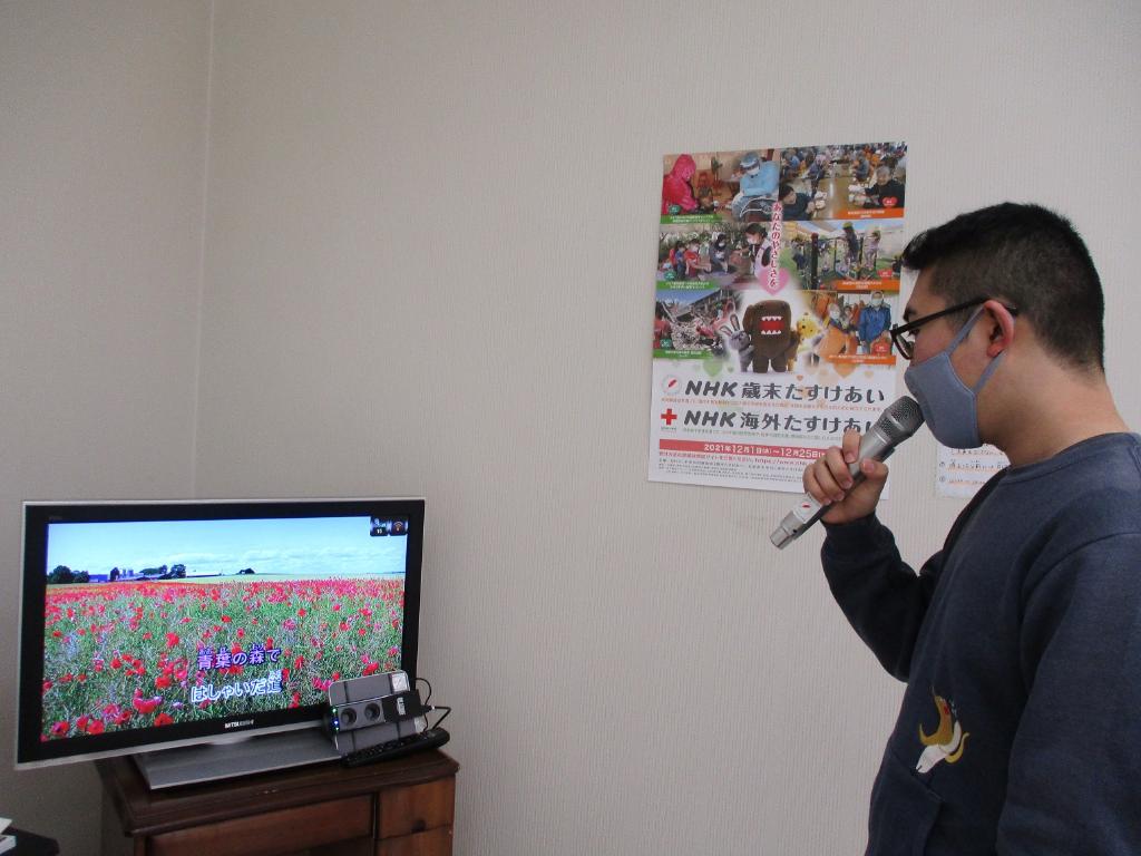 今回カラオケ機器の導入により、昼休みに若いご利用者を中心に気分転換を図られ、楽しい交流の場所となっております。知っている曲の場合、皆様各自で歌われ大変喜ばれたいます。