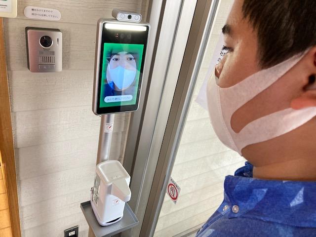 サーモカメラ型の体温計を設置することで、利用者が自分で検温を速やかに実施できるようになり、感染防止のリスク軽減及び職員の負担軽減にもつながる。