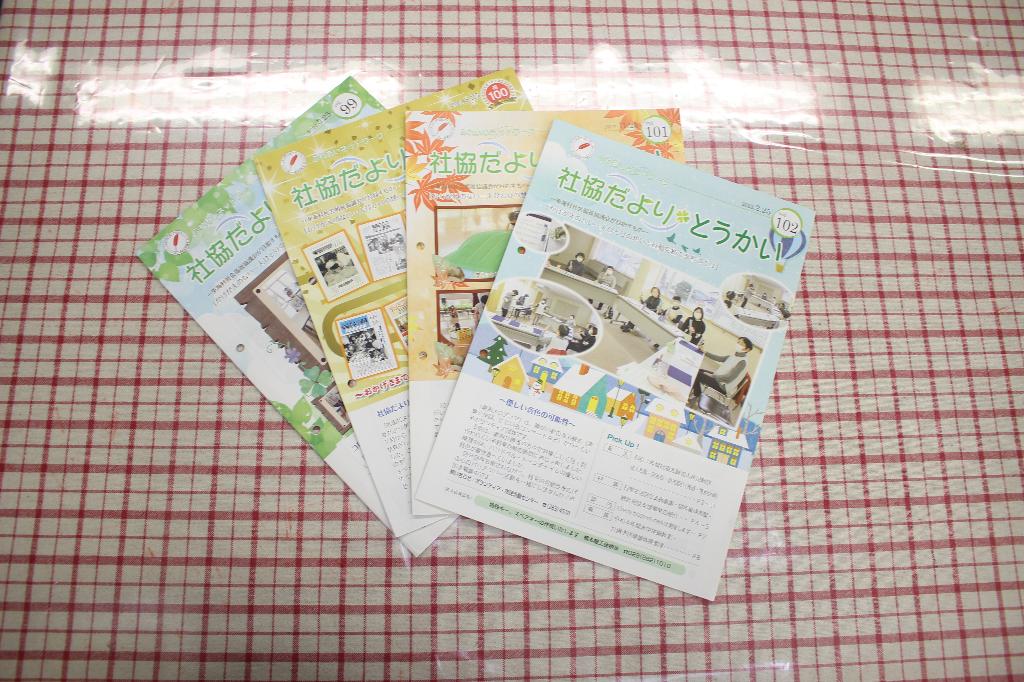 村社協職員で構成される広報委員会において住民に広報すべき情報を検討し,広報紙「しゃきょうだよりとうかい」を作成して発行します。