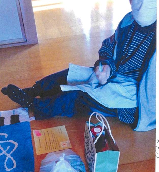 高齢者の見守りも兼ねてお弁当を配食する際、私たちが使用しているファスナー付きの集金袋を見て使いやすそうの声があった為、集金袋のツマミに鈴のストラップを付けて三国の特産品と一緒にプレゼントをした。小銭、通帳、保険証を入れるのにちょうど良いサイズで食品をあわせて大変喜んでいただけた♡