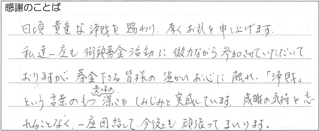 日頃、貴重な浄財を賜わり、厚くお礼を申し上げます。