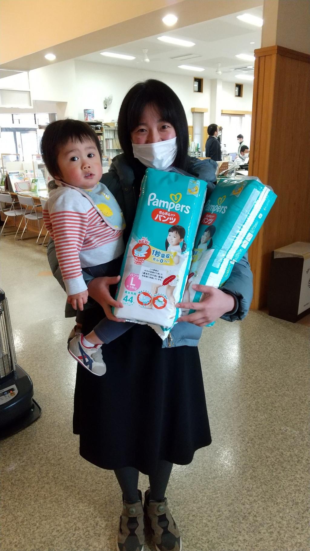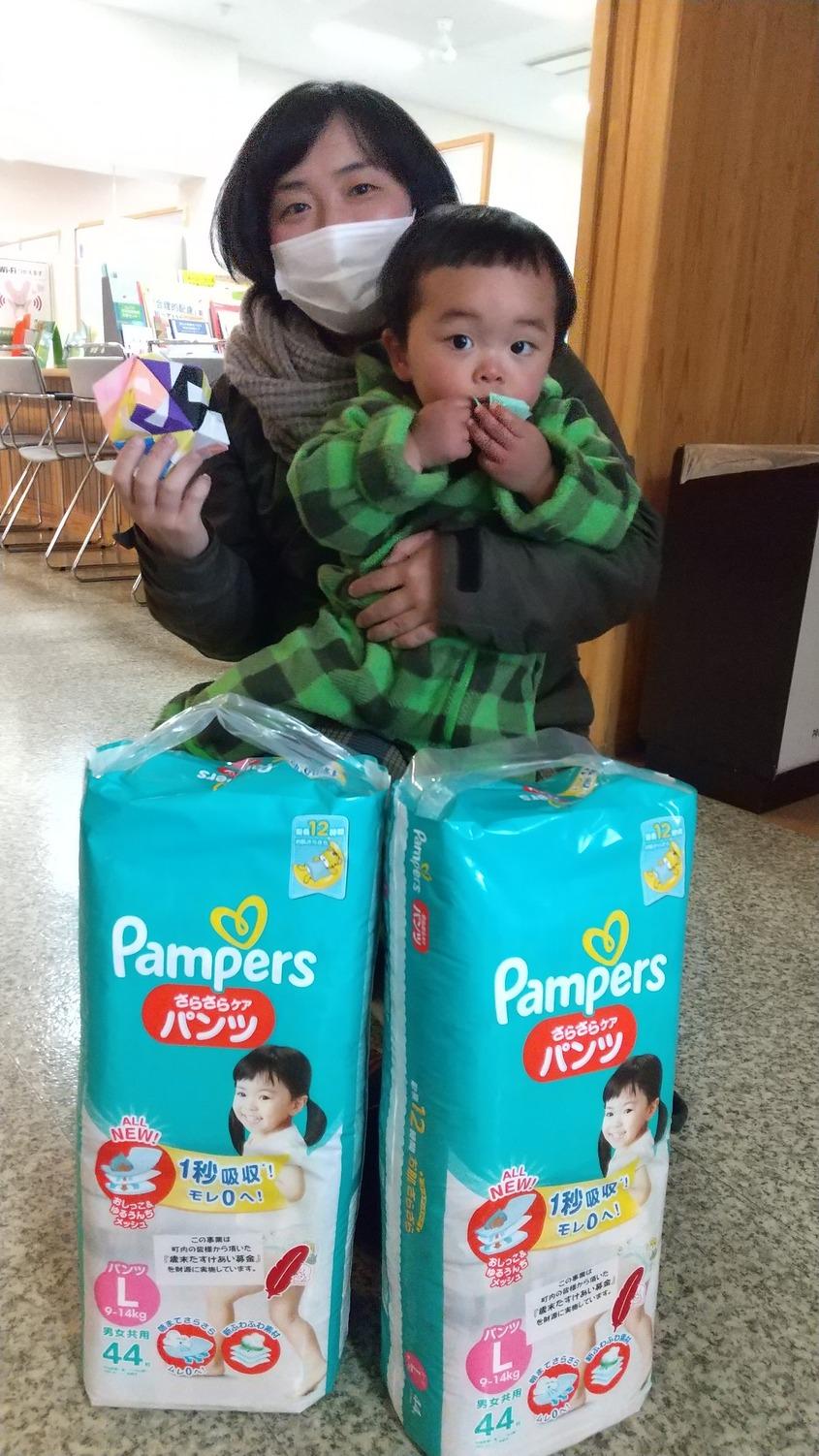 子育て支援として幼児の世帯がいる家庭に、紙おむつを配布した。