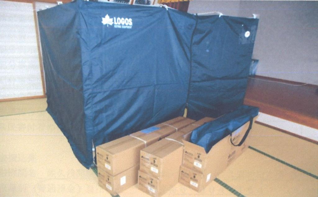 この度は、県民の皆様からの大切なご寄付によります令和3年度共同募金安心・安全なまちづくり活動公募配分事業の採択をいただき、「避難所用間仕切りテント」を6台を購入することができました。