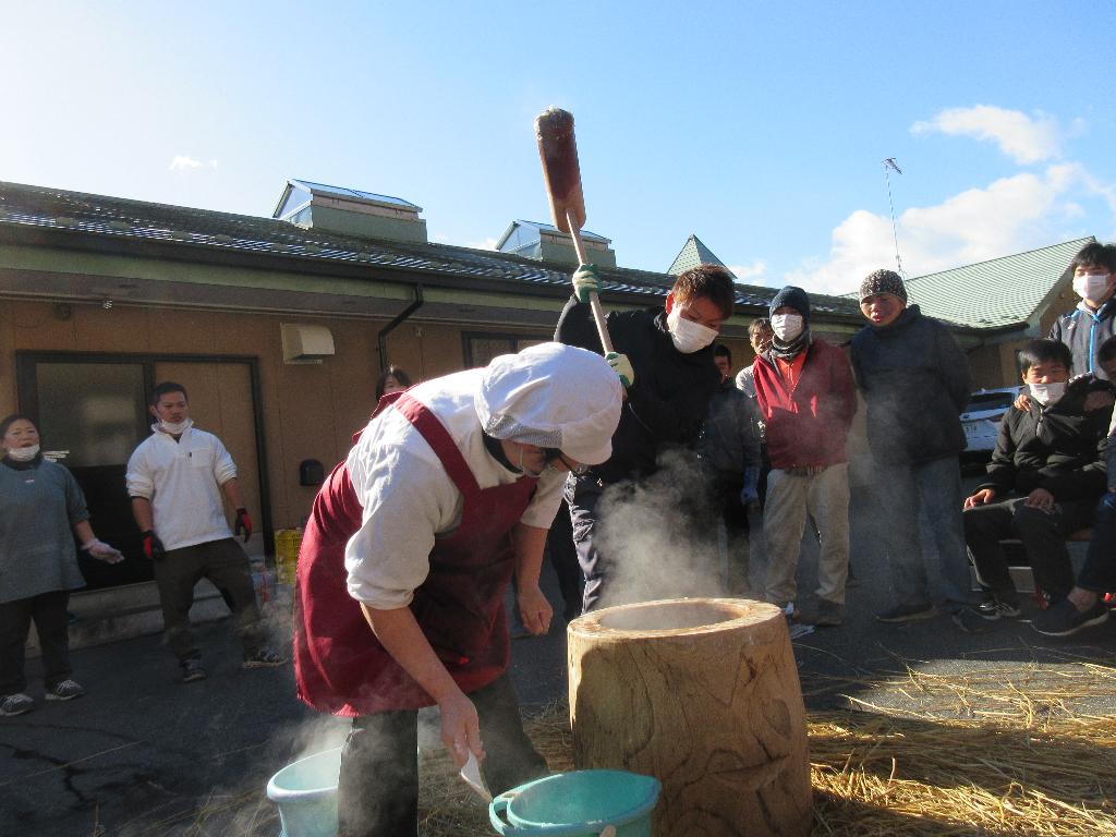 すぎなみき学園では今回頂いた配分金を年末の恒例行事である餅つき会に使用させていただきました。会場にはお餅をつく心地いい音と利用者さんの元気のいい掛け声が響き渡り、利用者の皆さん、職員ともに有意義な時間を過ごすことができました。