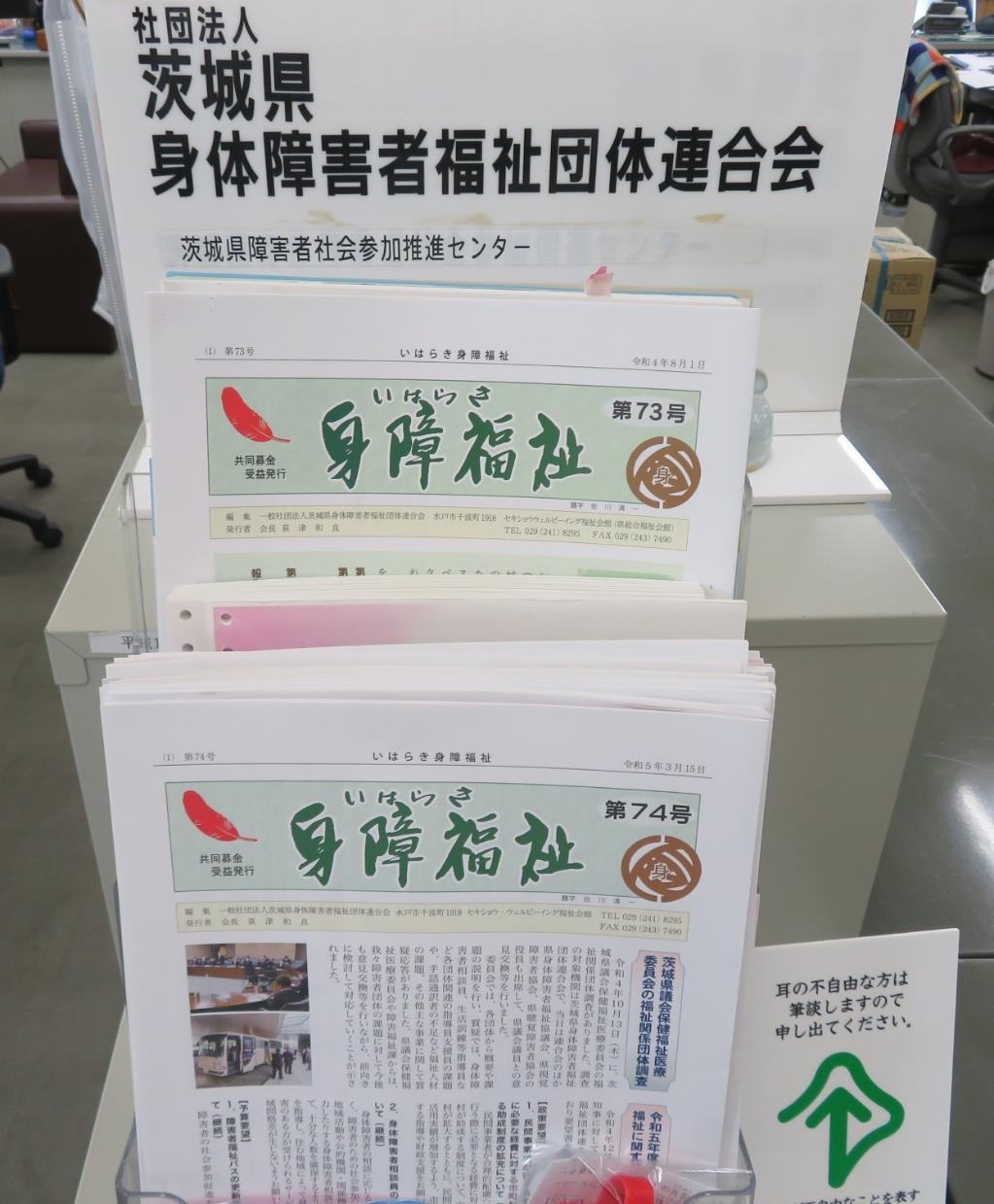 共同募金会からをいただいた助成金は茨城県身体障害者福祉団体連合会の広報紙「いはらき身障福祉」の発行に使わせていただきました。身体障害者をめぐる施策の状況や当連合会の活動報告、研修会の内容や障害者関連情報などを掲載することにより情報共有や福祉関係者間の連携強化に役立たせていただいております。