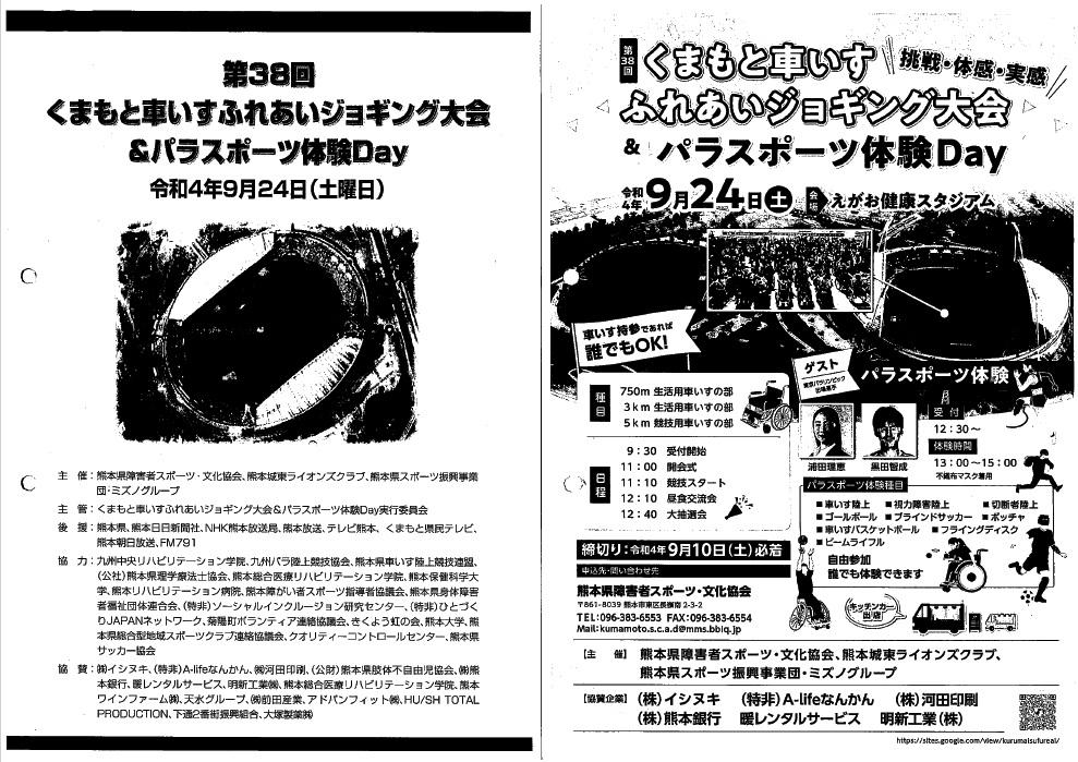 | 活動内容の補足事項 | くまもと車いすふれあいジョギング大会 |