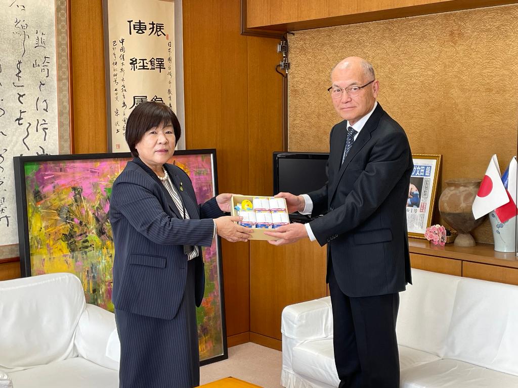 新入学児童へのお祝い品として赤い羽根イラスト付きの防犯ブザーを市内すべての小学校へ贈呈することができました。