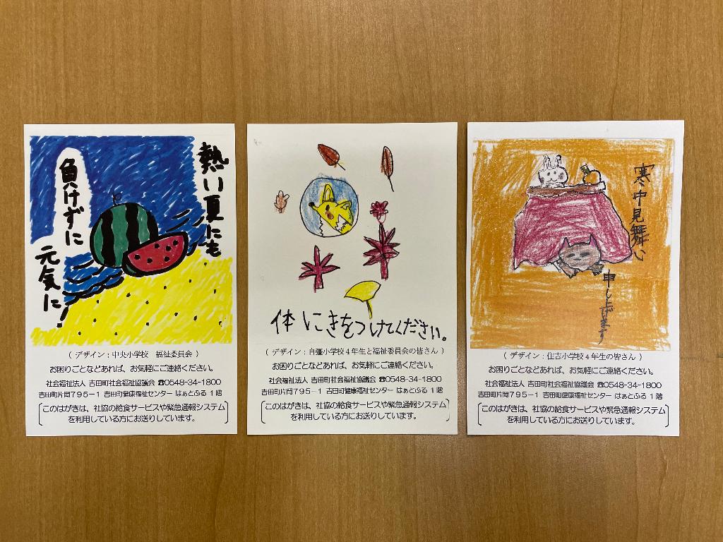 暑中見舞い、敬老の日、寒中見舞いと3回にわたり絵はがきを届けることができました。