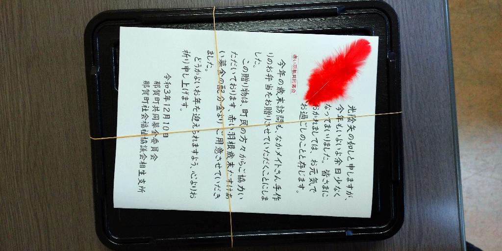 歳末たすけあい事業として、寝たきり高齢者等へおむつを、また一人暮らし高齢者へはボランティアによる手づくり弁当を、民生委員の協力で配付した。毎年楽しみに待っている方や後日お礼の言葉をかけてくれる方もいて、とても喜んでくれているのが分かります。これからも続けていきたい事業です。
