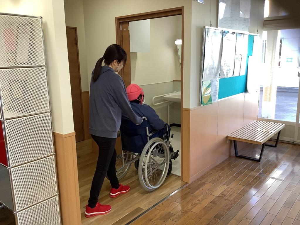 平成10年に開所した生活介護事業所「デイアクティビティセンターWIN」は、多機能型トイレは2階にしかありませんでした。この度共同募金の配分を受けまして、1階に多機能トイレの整備が行えたことで、車いす利用者や肢体不自由の利用者は、通所時、昼食前後、帰宅前、外出前後など多くの機会に利用されております。共同募金にご協力して頂いた皆様、本当にありがとうございます。