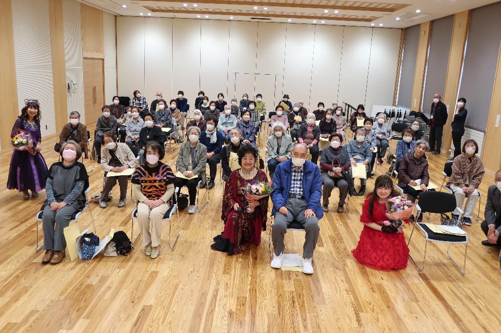 村内在住65歳以上の一人暮らしの方々をお招きし、岐阜県で活躍されているコーラスグループ「フレンズ」の皆さんの歌謡ショーを楽しんでいただきました。歌のほかに体操やユーモアのある話もあり、笑顔があふれる時間となりました。ありがとうございました。