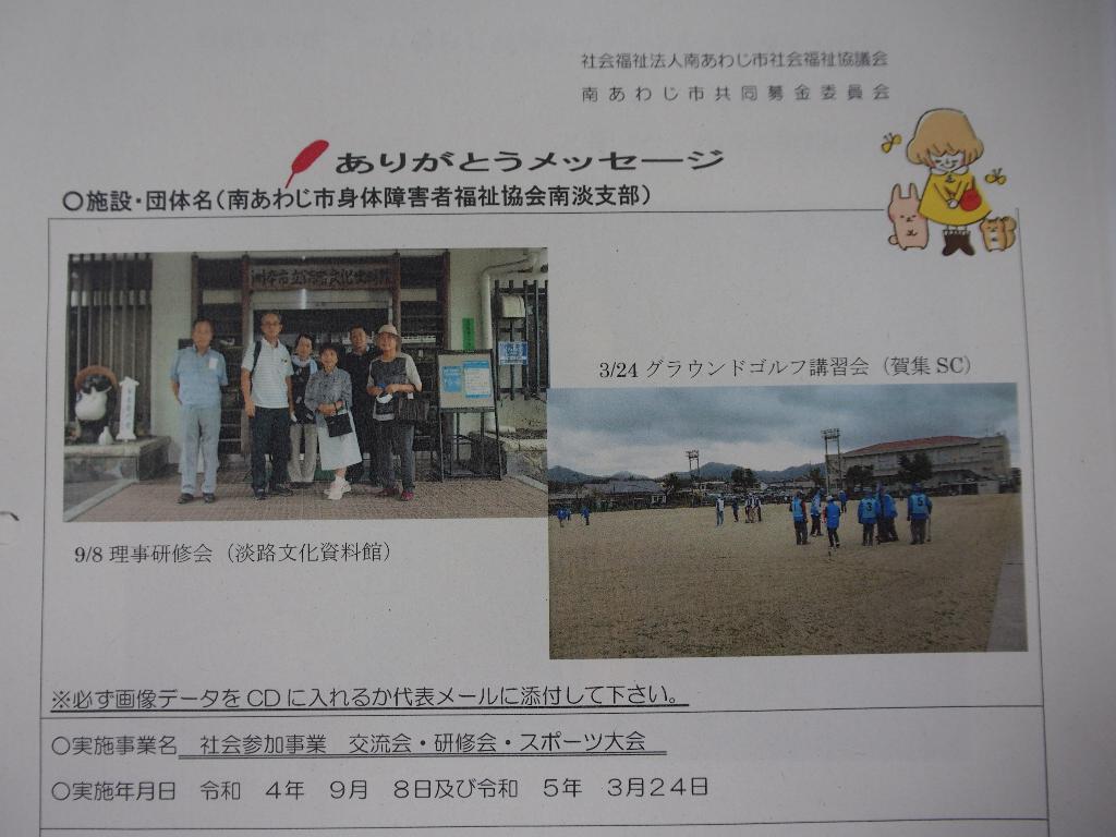 | 団体名 | 南あわじ市身体障害者福祉協会南淡支部 |