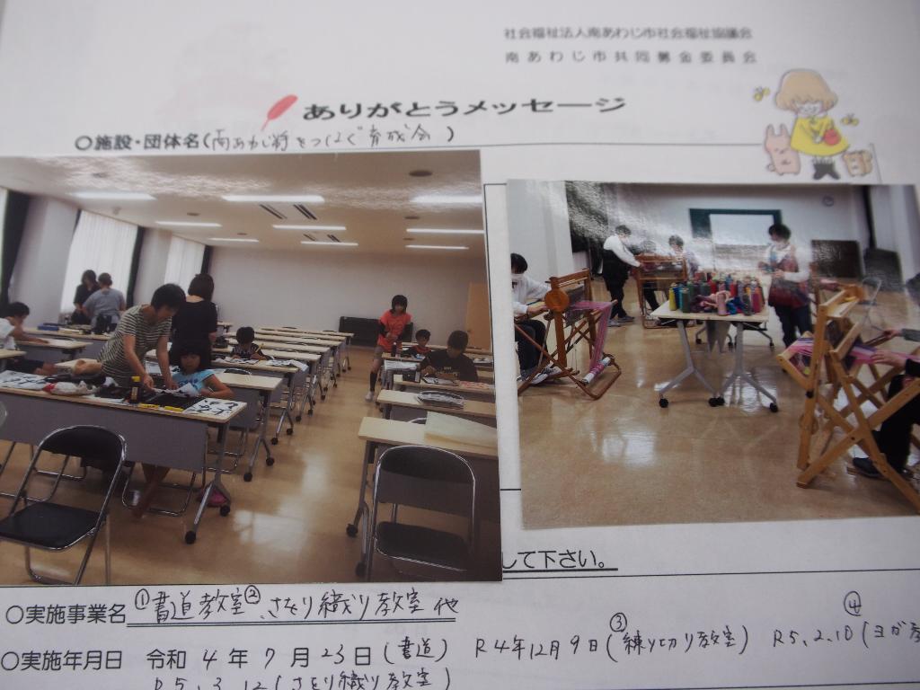 | 活動内容の補足事項 | さをり織り体験・書道教室・映画観賞会 |