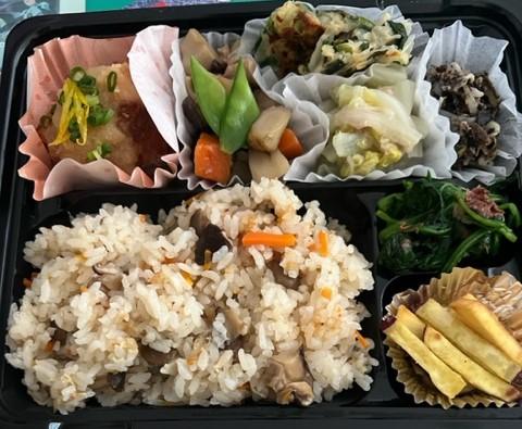 村内80歳以上の一人暮らし世帯の方を対象に、五木村食生活改善推進協議会の皆さんにご協力をいただき、健康に良い食材を使ったお弁当を作っていただき、希望された方へお弁当の配達をおこないました。後日、お弁当を食べられた方々より「おいしかったよ」などの声をたくさんいただきました。