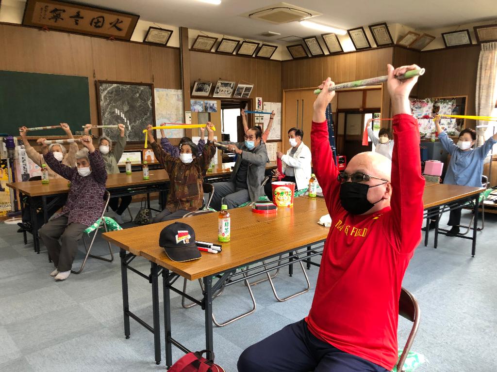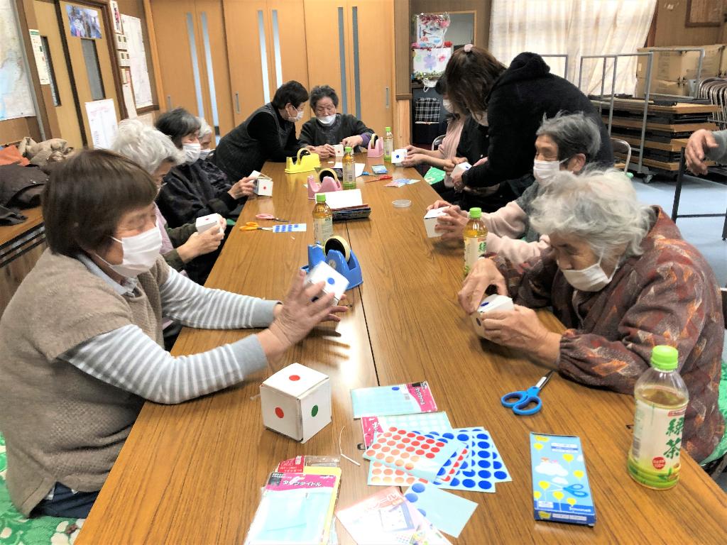 毎月1回、畑地区公民館で佐津・奥佐津地域住民やグループホーム「かがやき」入居者との交流事業を実施。レクリエーションや移動買い物車による買い物支援、地域包括支援センターによる情報提供などを行う。