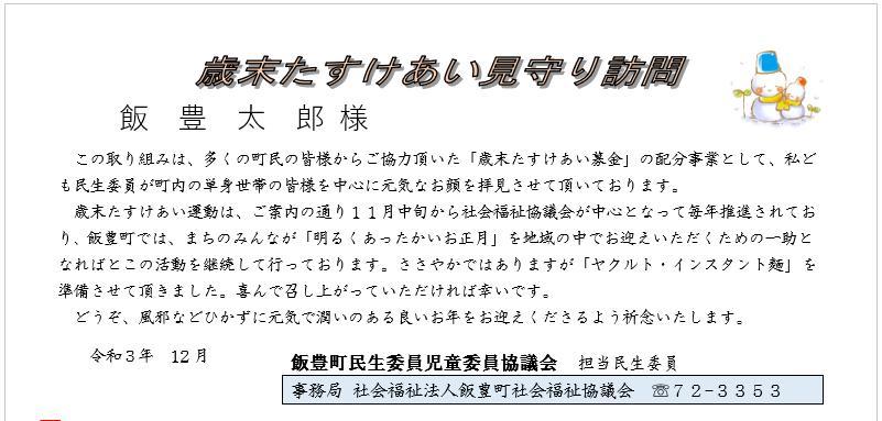 『単身高齢者等を対象とした歳末見守り訪問事業』