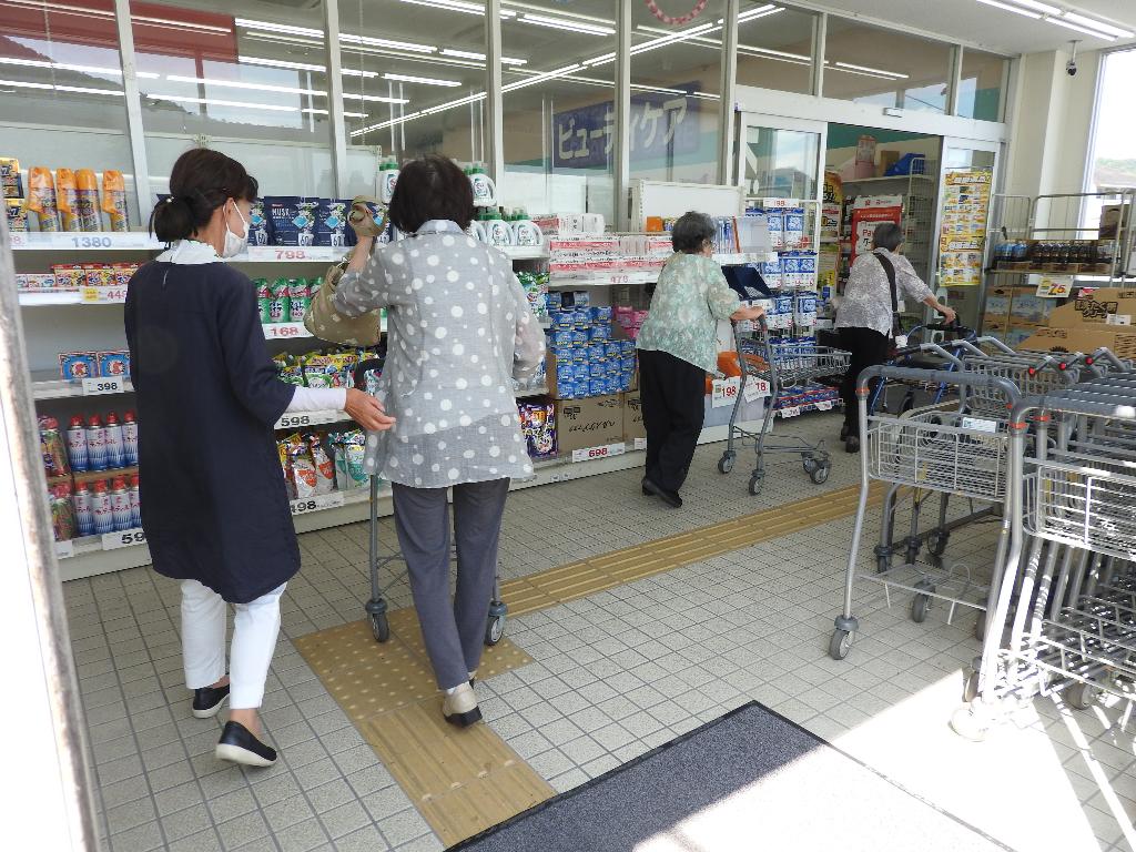 月に1回だけではあるが、利用者は買い物ツアーの日を楽しみにしておられます。普段外出しづらい高齢者にとっては、自分で商品を見て買い物できる機会は貴重な機会となっています。また何人かが乗り合わせて買い物に行くため、行き帰りの車内も楽しげな会話が続き、参加者の自立支援や社会参加の重要な機会となっています。