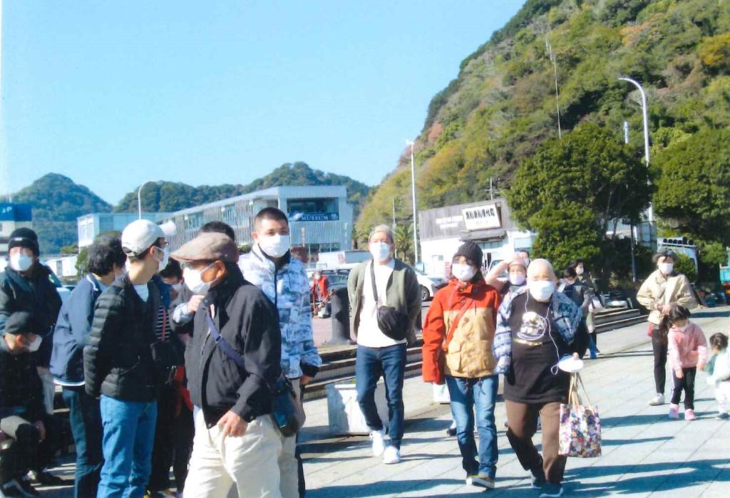 親子で下田港「黒船サスケハナ」に乗船し、かもめの餌付け体験。その後下田ロープウェイで寝姿山へ上り昼食会を。