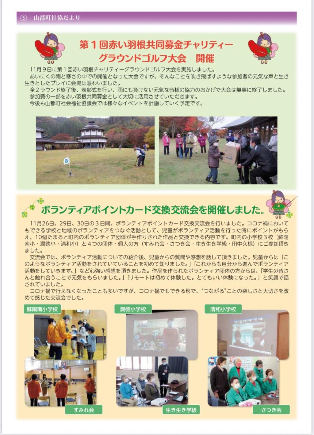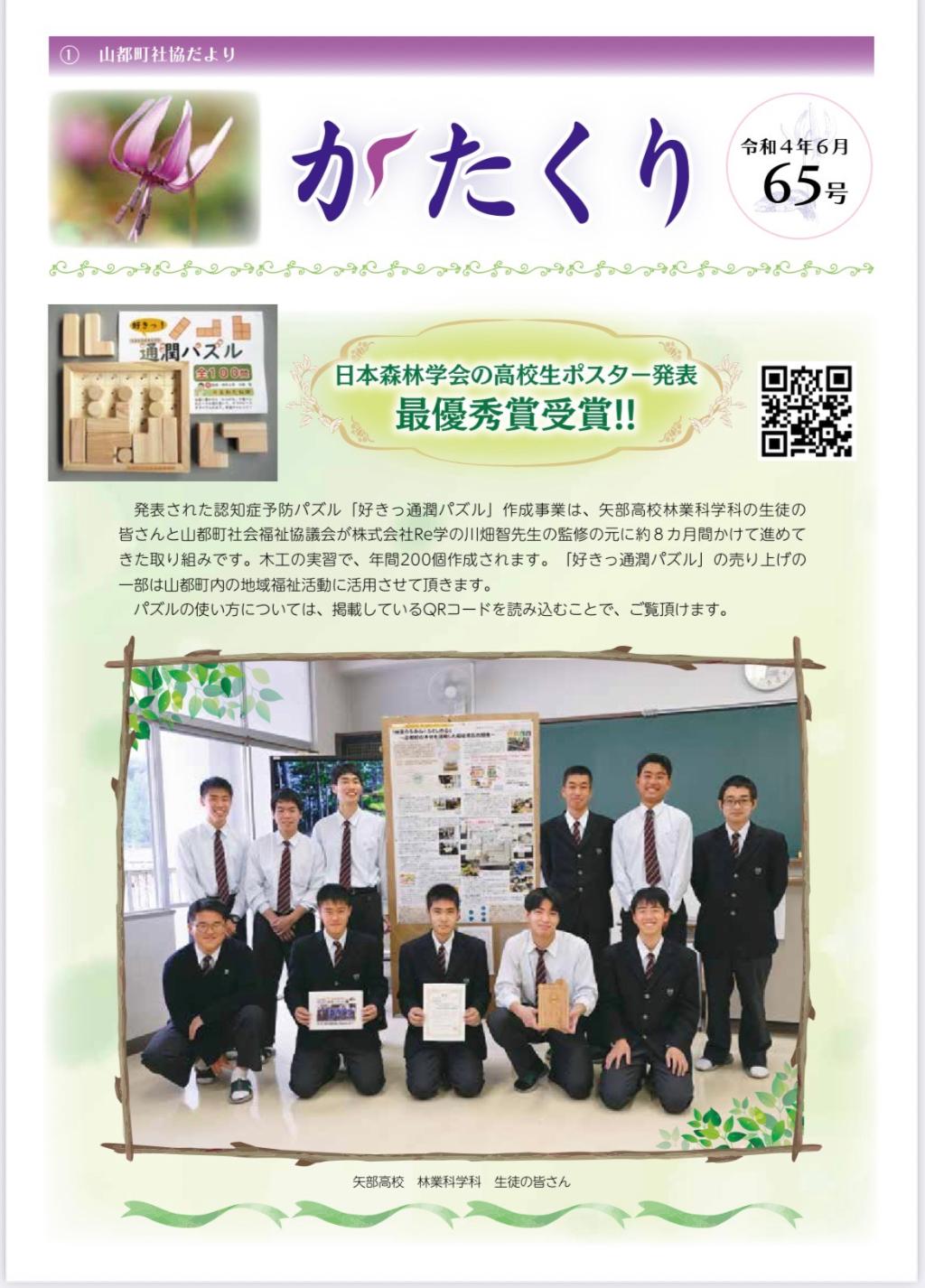 頂いた助成金で作成しております山都町社協広報誌「かたくり」に関しましては、一人でも多くの町民の皆様に福祉への興味・関心を持っていただくために試行錯誤して作成をしております。今後も読みたくなる広報誌を目指してまいりますので、どうぞよろしくお願いいたします。