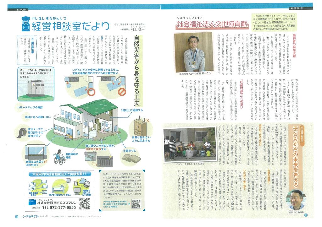「施設通信」の発行等を通じ、最新の社会福祉の動向等の情報を大阪府内の社会福祉施設や高校生等に発信しました。また、社会福祉施設には、質の高い法人経営・施設運営に資する情報提供を行うとともに、次代を担う高校生に対しては福祉の魅力を発信することができました。ありがとうございました。