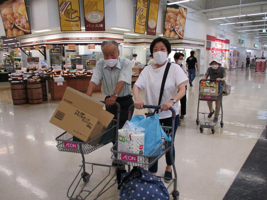 村に唯一あったスーパーが閉店したことをきっかけに、日常生活において買い物等に出かけることができない免許を有しない方等を対象に、最寄りのスーパーマーケットまで送迎し、自分の目で確かめて自由に買い物をしてもらう事業です。利用者には大変好評で前年度は月に1回でしたが、令和4年度は月に2回と回数を増やして実施しています。普段買えない重い物もスタッフが手伝ってくれるため安心して買い物ができます。皆さんとても楽しみにています。共同募金の配分金は車両のガソリン代に充てています。今後とも続けていきたい事業の一つです。皆さまの心温まる募金に感謝申し上げます。